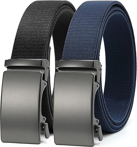 CHAOREN Ratchet Black & Latte Elastic Belt for Men 2 Pack - Nylon Web Adjustable Belt 1 3/8" Fabric Golf Belt