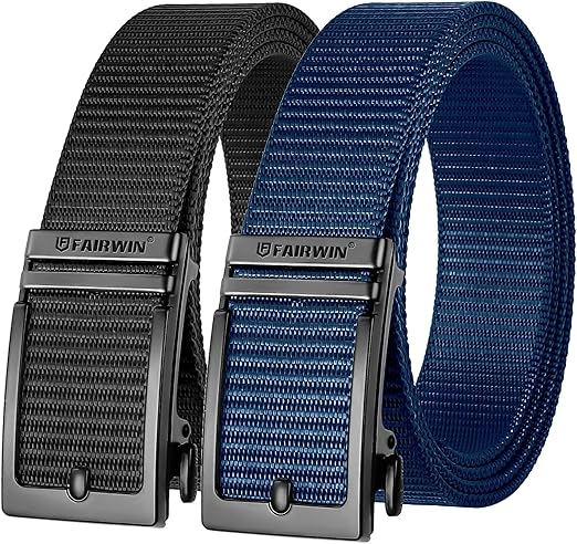 FAIRWIN Golf Belts for Men 2 Pack Mens Ratchet Casual Belts for Jeans Adjustable Slide Belt Carry Belt Web Nylon Belt