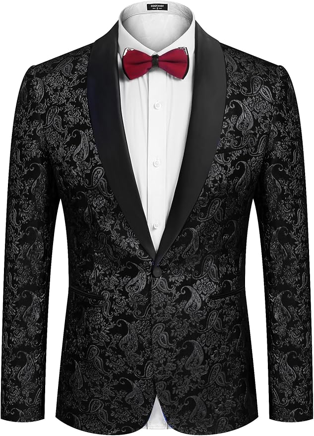 COOFANDY Men's Floral Tuxedo Jacket Jacquard Suit Jacket Slim Fit Blazer for Wedding, Prom, Dinner