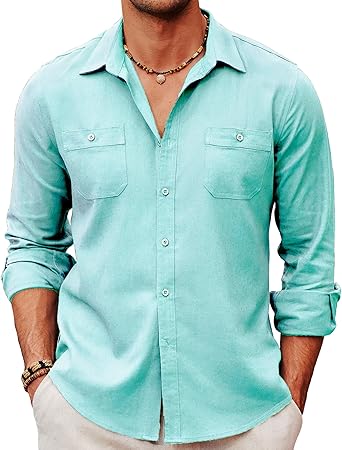 COOFANDY Men's Casual Button Down Shirts Long Sleeve Chambray Linen Shirts
