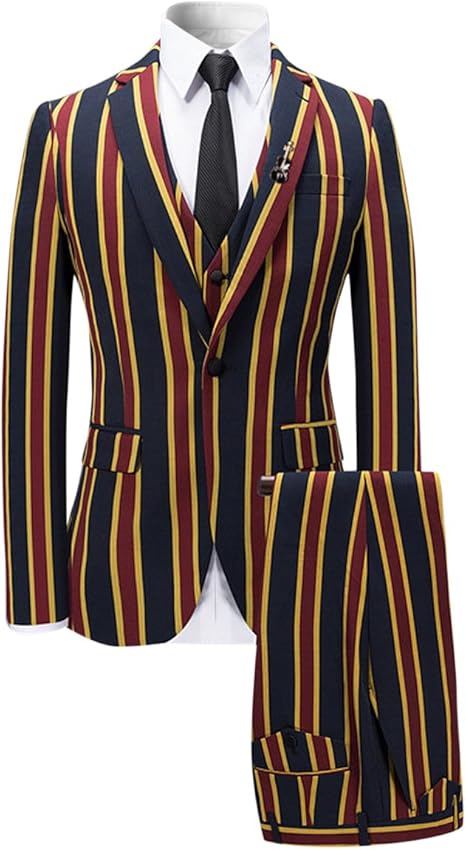 Men's Colored Striped 3 Piece Suit Slim Fit Tuxedo Blazer Jacket Pants Vest Set