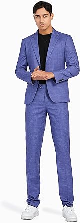 Men's Slim Fit 2-Pieces Suit Two Buttons Solid Jacket Pants Set Formal Wedding Business Casual Suit for Men_Ê_