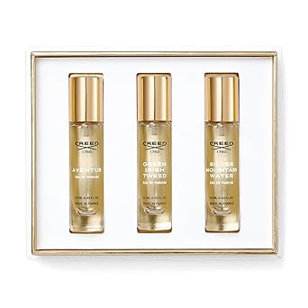 Creed Men's Holiday Gift Coffret Set, Features 3 Signature Cologne Scents of Aventus, Green Irish Tweed, & Silver Mountain Water, 3 x 10ml