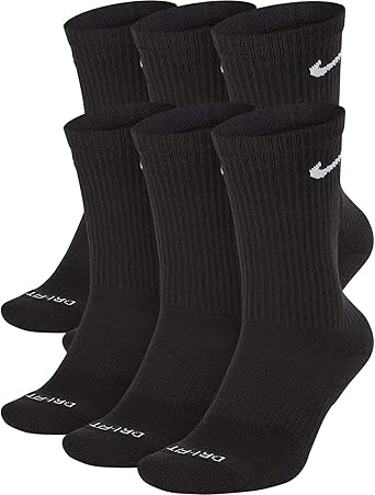 Nike Everyday Plus Cushioned Training Crew Socks (6 Pack) LG Black