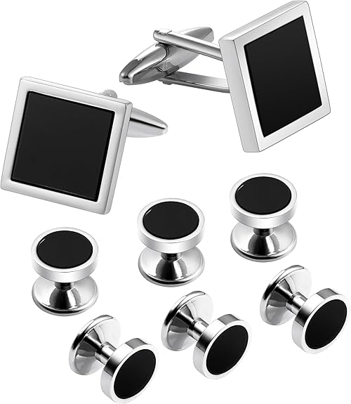 Black Cufflinks and Tuxedo Shirt Stud Set for Men - Wedding Business Parties in Gift Box