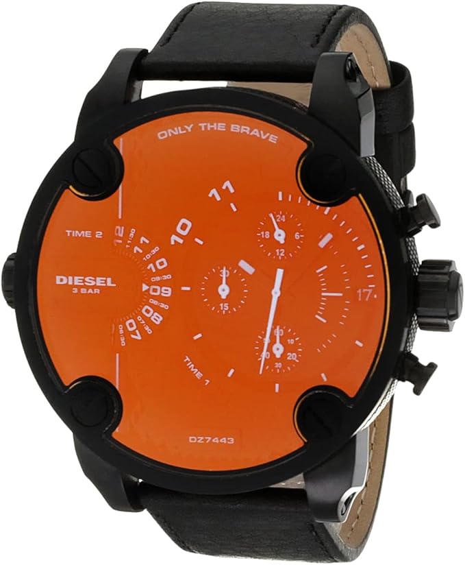 Diesel DZ7443 Reflective Blue/Red Chronograph Dial Black Leather Band Little Daddy Collection Men's Watch