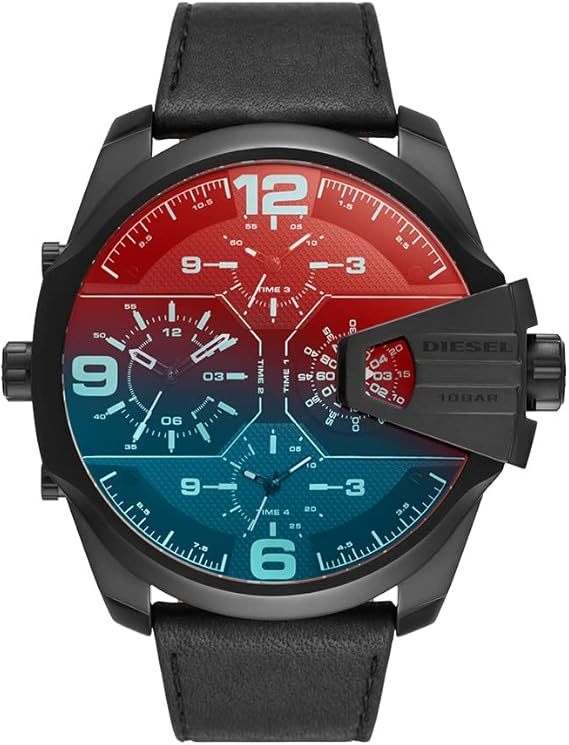 Diesel DZ7446 Black Dial Black Leather Strap Men's Uber Chief Three-Hand 54mm Watch