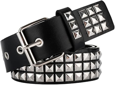 Black Studded Belt Punk Belt Rock Rivet Belts with Bright Pyramid Studded Belt for Men/Women