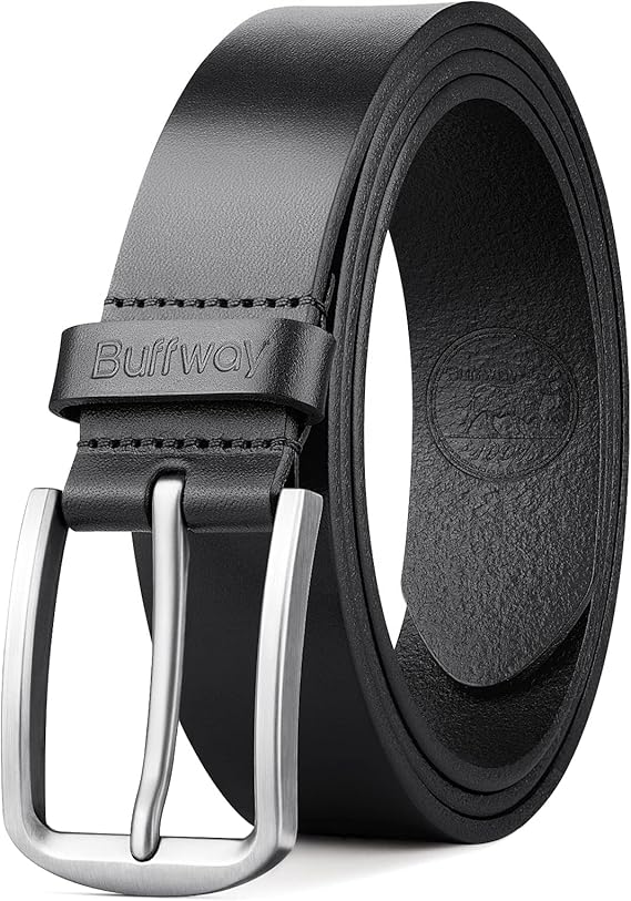 Buffway Mens Belt Full Grain Genuine Leather Belts for Men Casual Jeans or Dress with Gift Box 1 3/8__�Wide