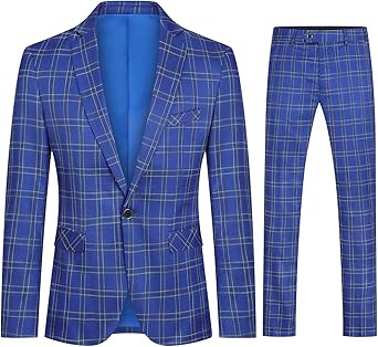 Cloudstyle Mens 2 PCS Plaid Suits Slim Formal Suit Checkered Blazer Jacket Pants
