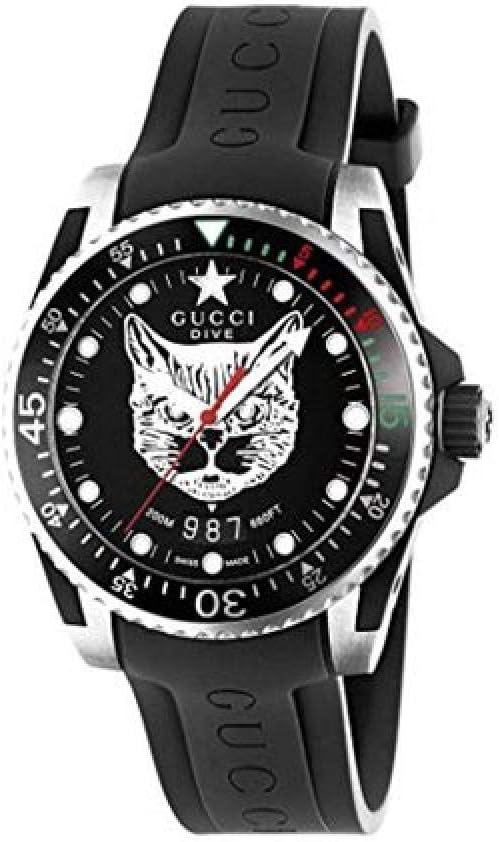 Gucci Dive Quartz Black Dial Black Rubber 40 mm Watch YA136320