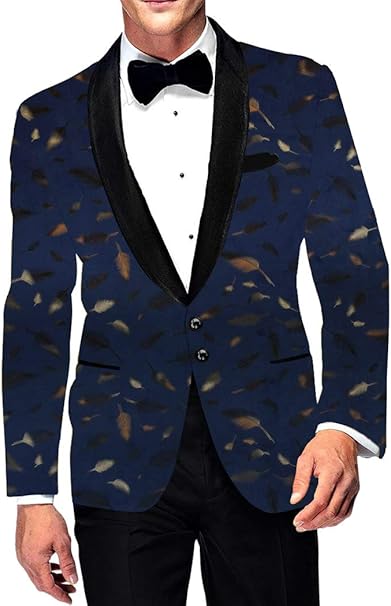 Mens Shawl Collar Two Button Slim fit Dark Navy Blazer Printed Polyester Suede Sport Jacket Coat SB19380XL52 52 X-Long Navy Blue