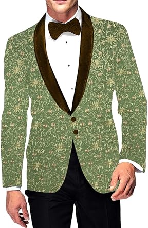 Green Embroidered sport jacket coat Shawl Collar Mens Blazer SBM1003