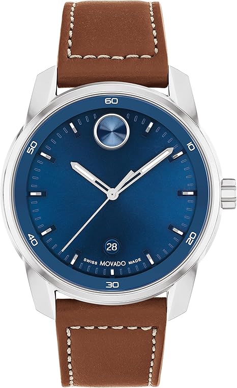 Movado 3600944 Bold Verso Men's Swiss Quartz Stainless Steel Case and Leather Strap Watch, Color: Cognac