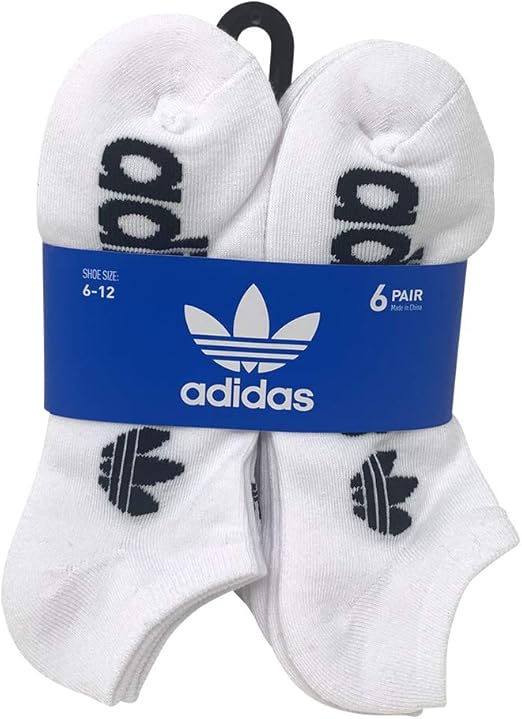 adidas Men's Originals Trefoil 6 Pack No Show Socks, (Shoe Size 6-12) (White)