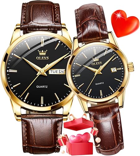 OLEVS Couple Watch His and Her Watch Set Mens Womens Matching Watch Diamond Romantic Valentine_„Žs Day Chronograph Watch