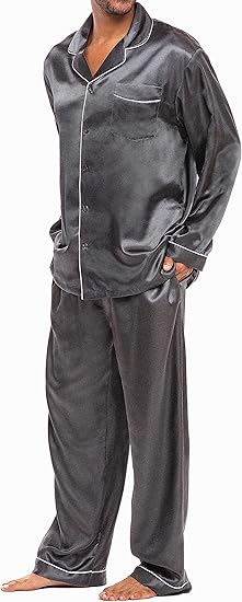 Alexander Del Rossa Mens Satin Pajamas Set, Satin Pajamas for Men, Satin PJ Set Men