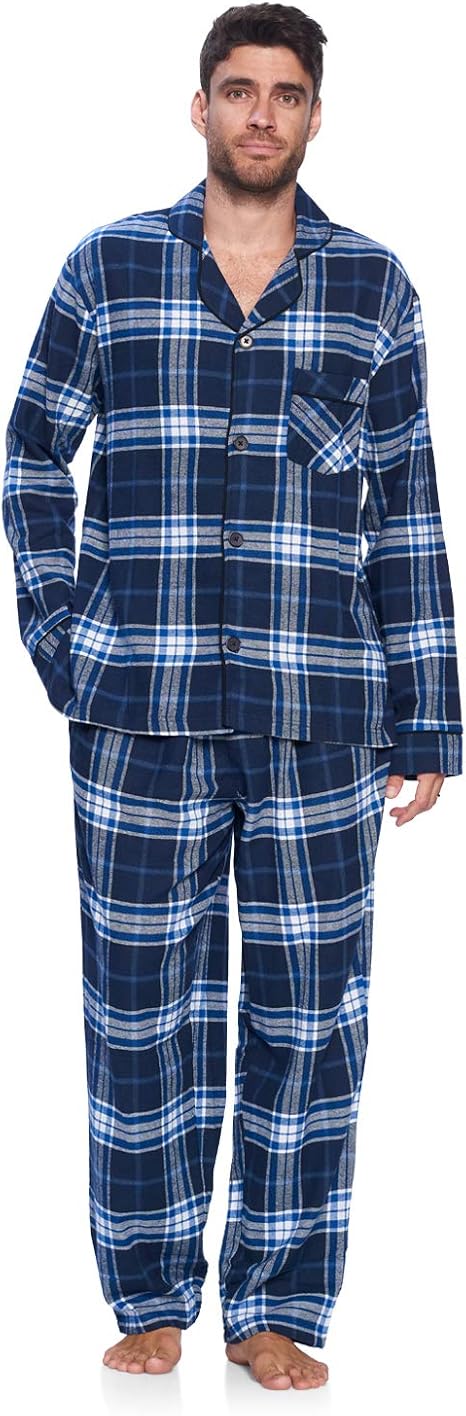 Ashford & Brooks Men‰۪s Flannel Long Sleeve Pajamas Set Plaid Sleepwear & Loungewear Button Down PJ Set