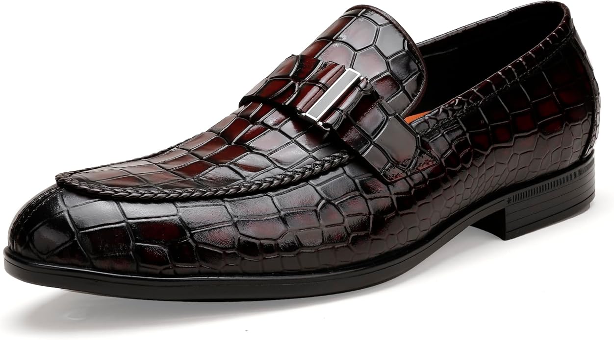 Classic Leather Penny Loafers for Mens, Fashion Crocodile Printed Business Dress Slip on Loafer Shoes for Men