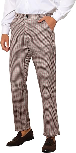 Lars Amadeus Checked Dress Pants for Men's Button Closure Flat Front Business Plaid Pattern Trousers