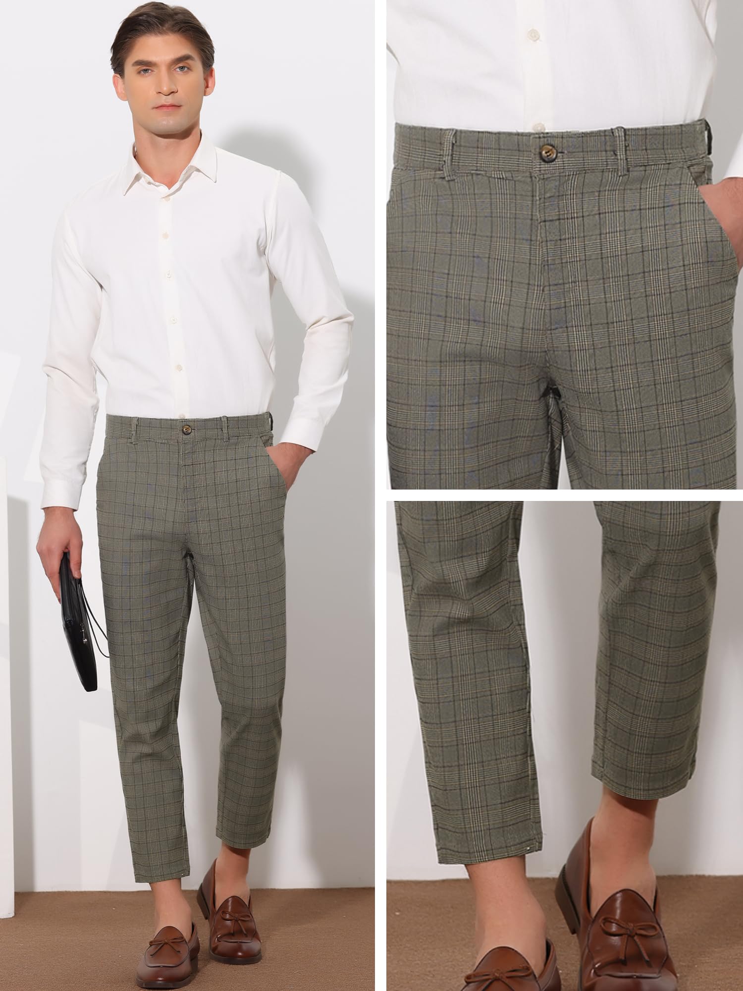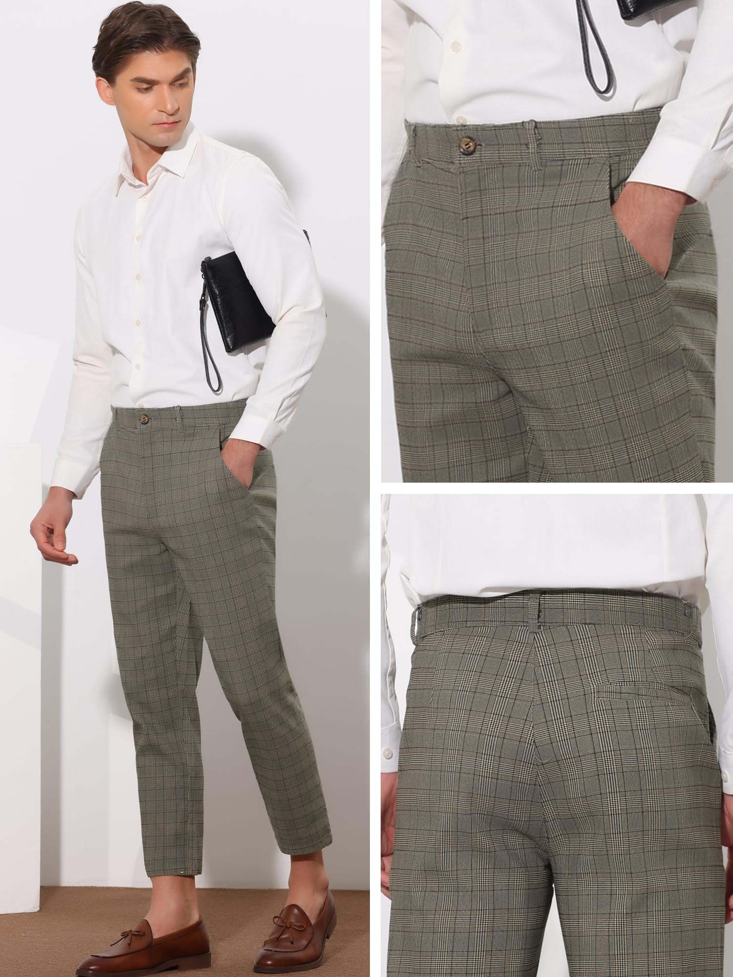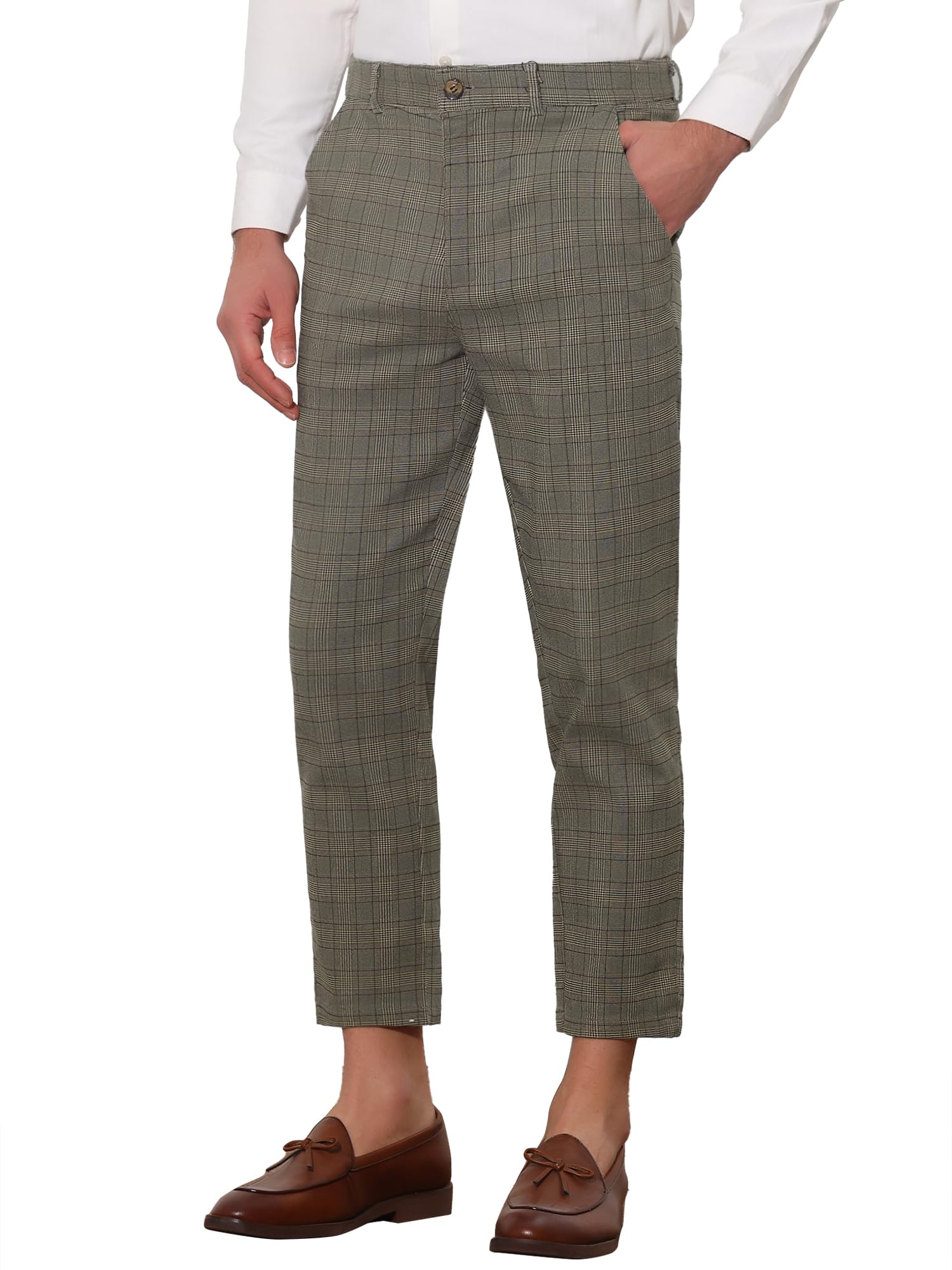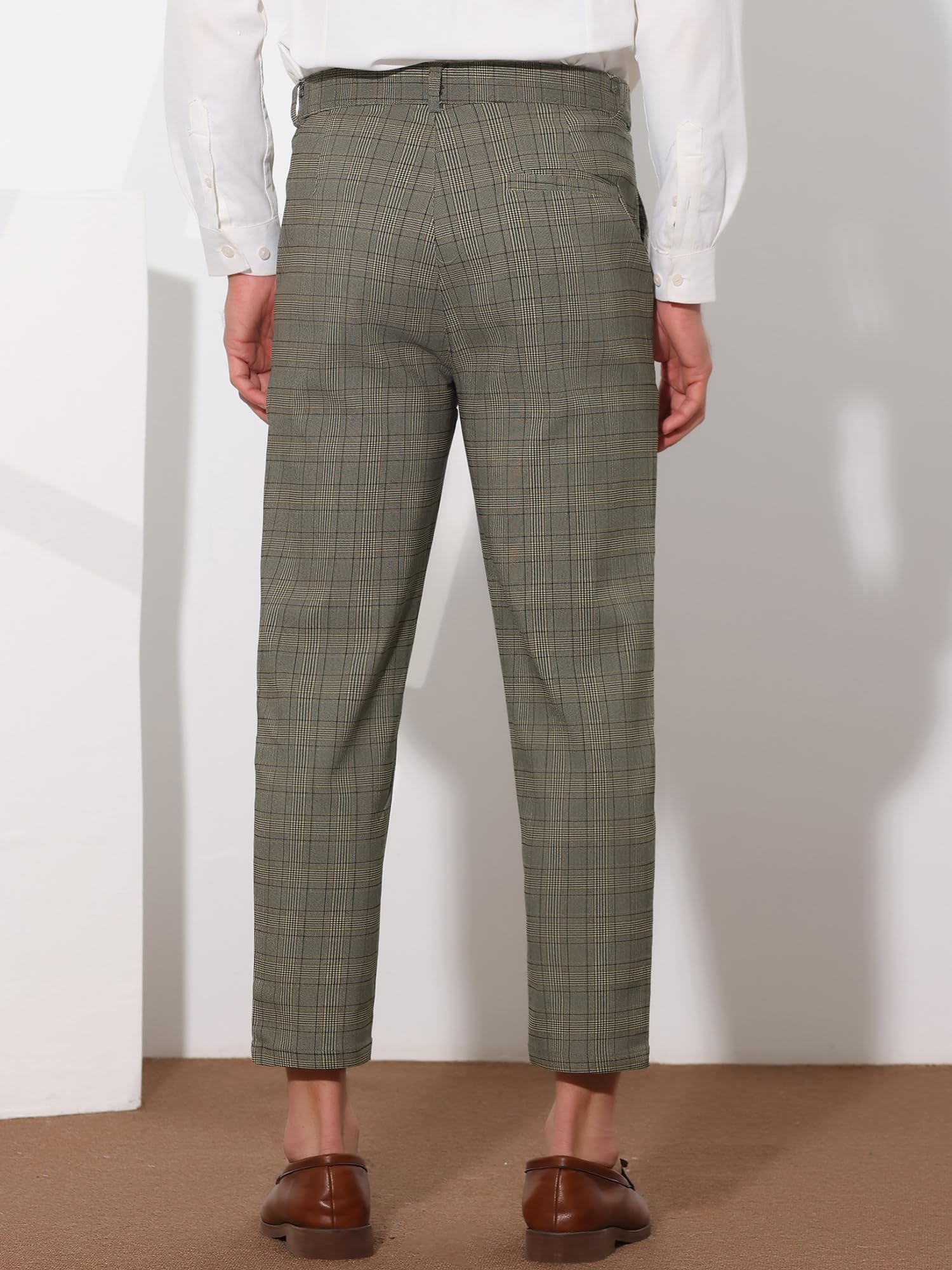 Details: Lars Amadeus Plaid Cropped Pants for Men's Flat Front Ankle Length Checked Dress Pants