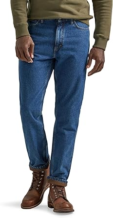 Lee Men's Legendary Relaxed Straight Jean, Fleece-Lined Dark Wash, 36W x 30L