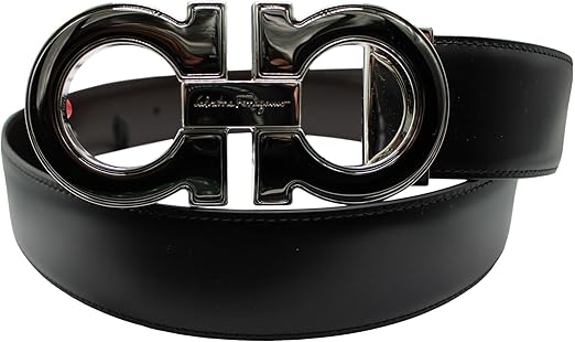 Salvatore Ferragamo Adjustable Reversible Black/Brown with Gunmetal Two Toned Gancini Belt