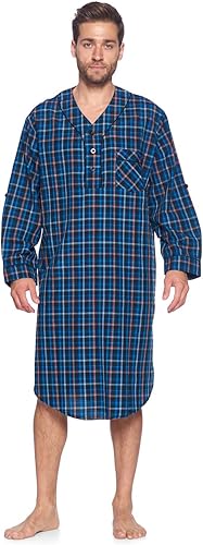Ashford & Brooks Men's Long Nightshirt | Woven Plaid Henley Gown Sleep Shirt