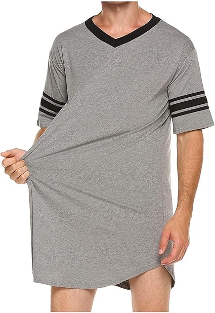 Big and Tall Mens Comfy Nightshirts Nightwear Short Sleeve Knee Length Sleep Shirts Nightgown Robe Soft Henley Pajama Shirts