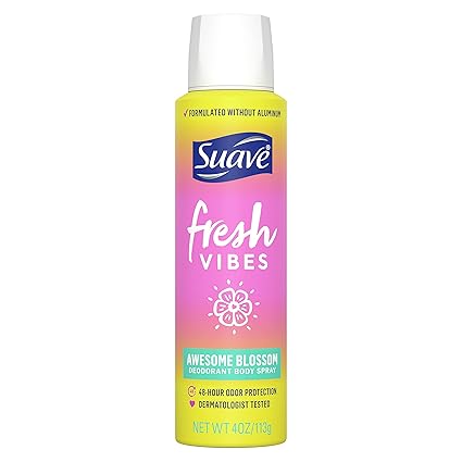 Suave Fresh Vibes Deodorant Body Spray, Aluminum Free 48 Hour Deodorant Protection, Awesome Blossom Dermatologist Tested, Body Spray Deodorant 4 oz
