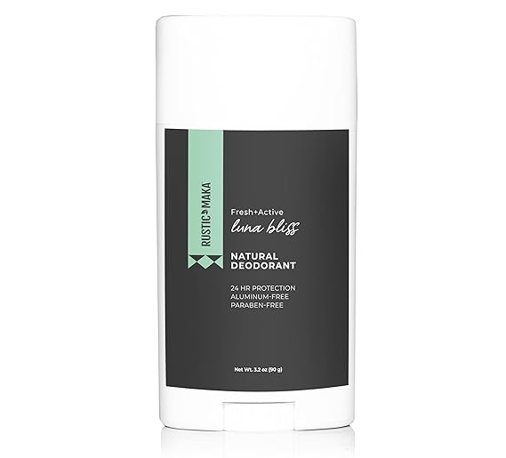 Rustic MAKA Natural Deodorant, Luna Bliss, Aluminum Free, Paraben Free, No Baking Soda Deodorant for Women, Activated Charcoal + Magnesium, Synthetic Fragrance-Free, Cruelty-Free