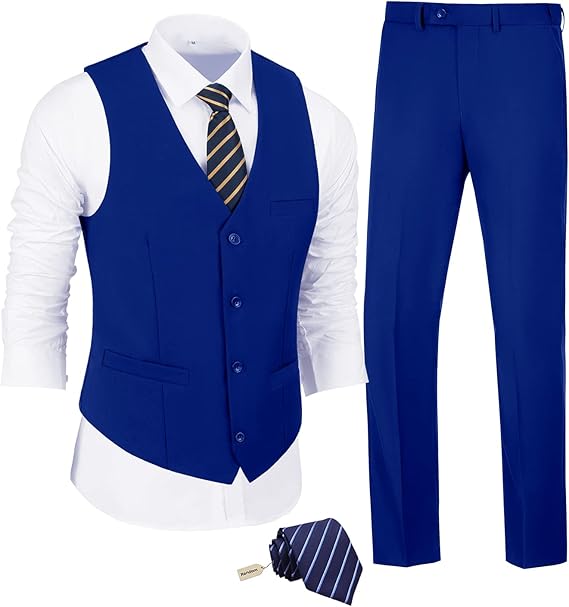 JPF Men's 2 Piece Slim Fit Suit Set, Solid Vest and Pants Suit for Men with Tie