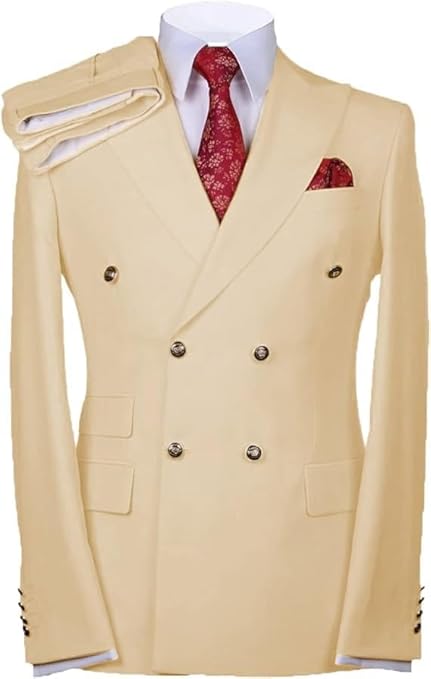 Casual Men's Suits Slim Fit 2 Pieces Double Breasted Jacket Prom Tuxedos Blazer Pants Wedding Groomsmen