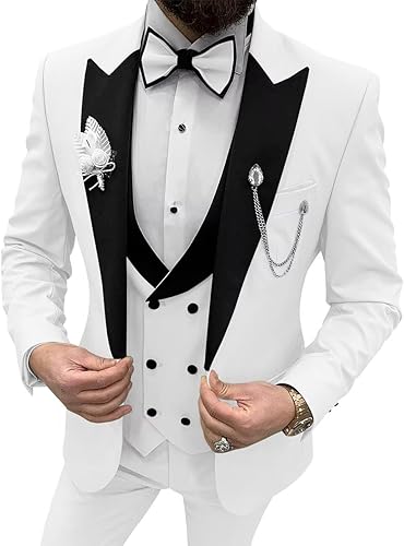 Mens Tuxedo Suit 3 Piece Slim Fit Suits Wedding Prom Party Dinner Formal Groomsmen Double Breasted Suit with Tie