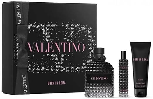 Valentino Born In Roma Uomo 3-piece Gift Set for Men (Eau de Toilette Spray 3.4 Fl Oz, Eau de Toilette Spray 0.5 Fl Oz, Shower Gel 2.5 Fl Oz)