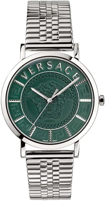 Versace J4 V-Essential 40Mm -Wc- 3 Hands Quartz Green Dial Sapphire Antireflex Glass Men's Watch-VEJ400921, Stainless Steel, Contemporary, Stainless Steel, Contemporary