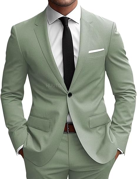 HUUTOE Men's 2 Piece Suits Slim Fit Wedding Business Party Prom Suit Solid One Button Notch Lapel Blazer Jacket and Pants