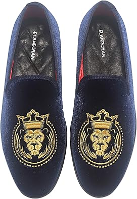 ELANROMAN Loafers for Men Velvet Shoes of Fashion Embroidered 1.0 and 2.0 Party Wedding Prom Shoes