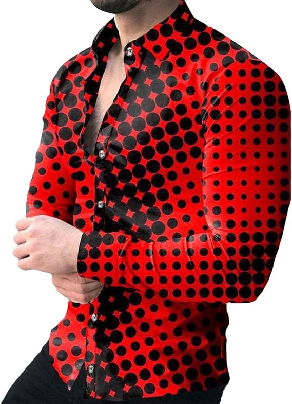 Aulemen Men's 3D Printed Dress Shirts for Party Long Sleeve Regular Fit Button Down Shirts
