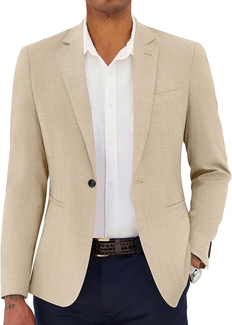 COOFANDY Men's Linen Casual Blazer Sport Coats Dress One Button Formal Classic Suit Jacket Business Blazer Jacket