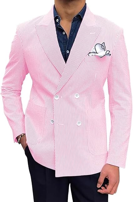 Men Seersucker Sports Coat Leisure Summer Jacket Seersucker Blazer for Men Beach Wedding Blazer