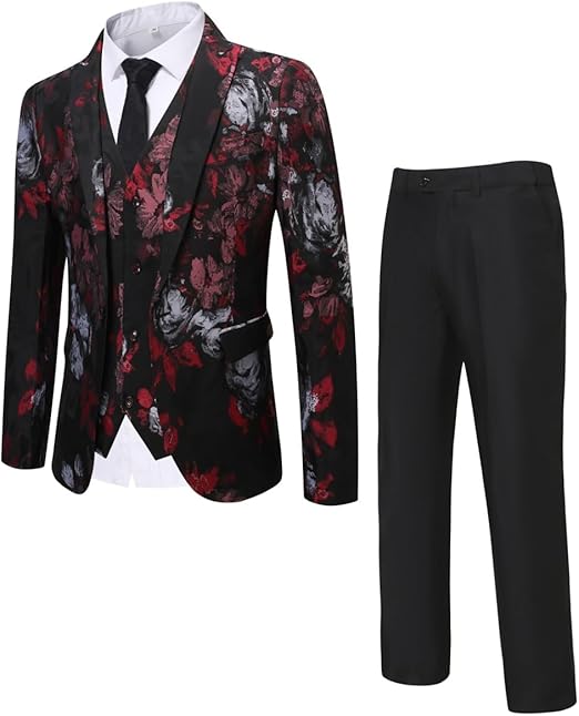 Cloudstyle Men's 3-Piece Suit Notched Lapel Floral One Button Modern Blazer Vest Pants Sets