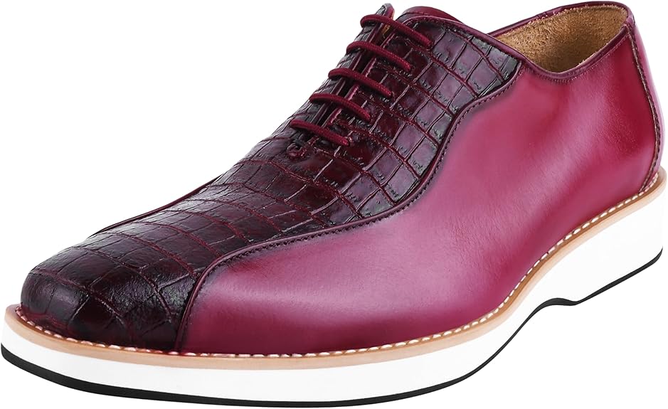 LIBERTYZENO Mens Genuine Leather Oxford Dress Shoes Burnished Toe Lace Up Shoes