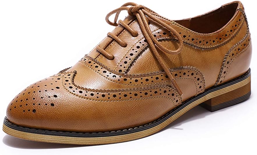 Mona flying Women's Comfortable Wingtip Oxfords Brogue Saddle Lace-up Leather Shoes for Ladies