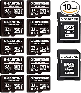 GIGASTONE 32GB 10-Pack Micro SD Card, Full HD Video, Surveillance Security Cam Action Camera Drone, 90MB/s Micro SDHC UHS-I U1 C10 Class 10
