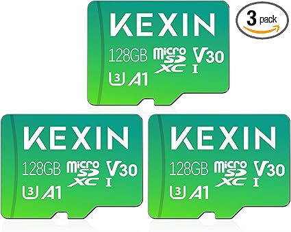 KEXIN 128GB Micro SD Card 3 Pack with Adapter - Up to 90MB/s 4K, V30, A1, C10, 4K UHD High Speed microSDXC UHS-I Memory Card Compatible with Action Camera Drone Game Smartphone Tablet 128G 3Pack