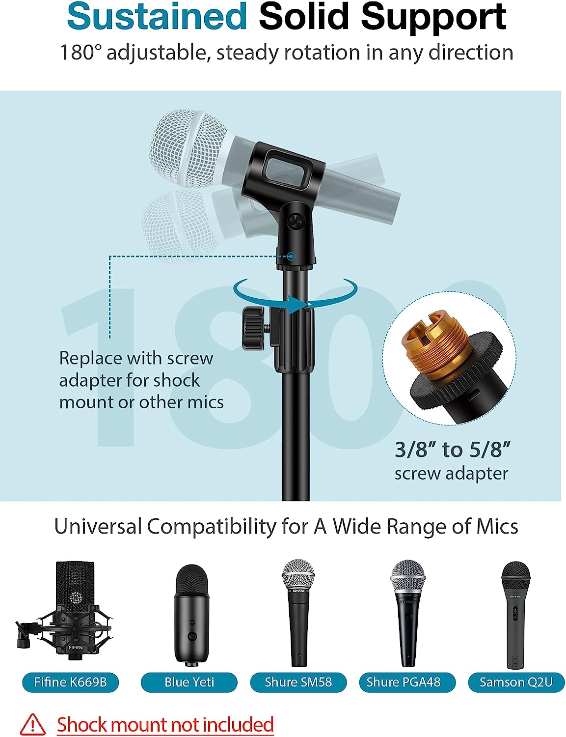 InnoGear Desktop Microphone Stand, Upgraded Adjustable Table Mic Stand with Mic Clip and 5/8" Male to 3/8" Female Screw for Blue Yeti Snowball Spark & Other Microphone