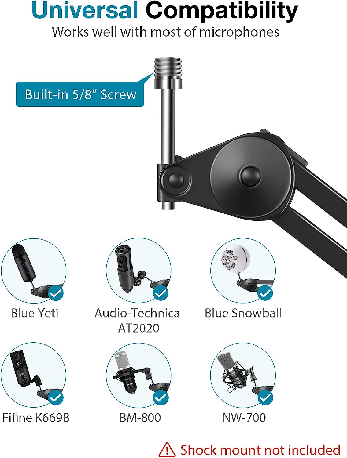 • University Compatibility: 5/8" connector is compatible with many microphones like Blue Yeti, Blue Snowball, AT2020, AT2020USB+, AT2035, ATR2500-USB, ATR2100-USB, etc.