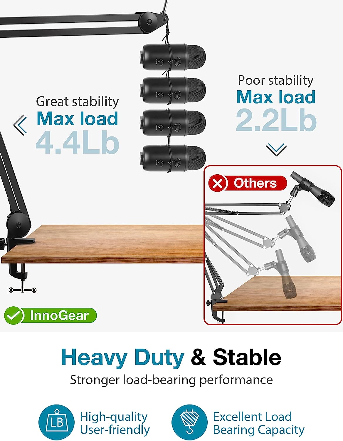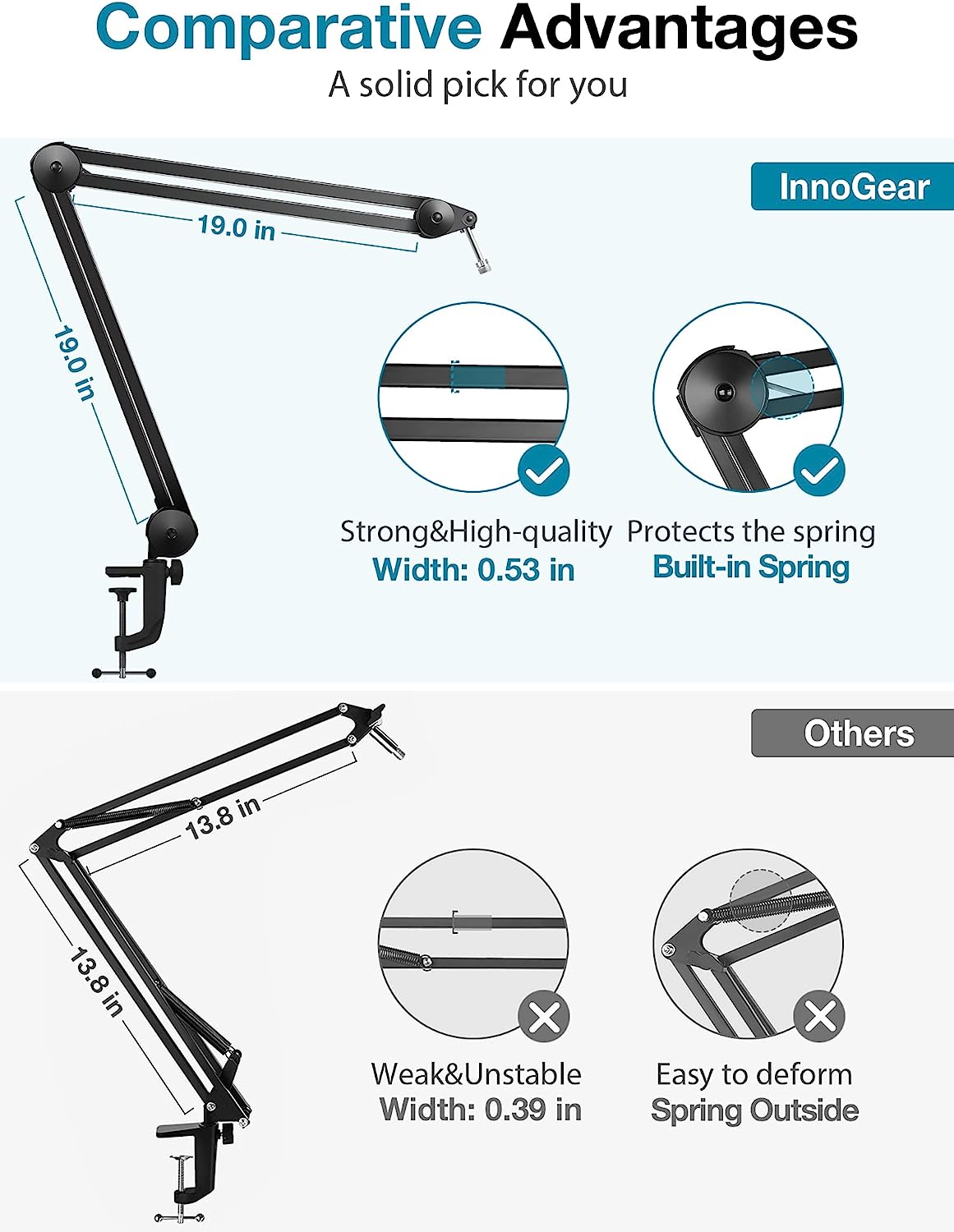 InnoGear Microphone Arm Stand, Heavy Duty Mic Arm Microphone Stand Suspension Scissor Boom Stands with Mic Clip and Cable Ties for Blue Yeti Snowball Hyper X QuadCast SoloCast Fifine Gaming(Medium)