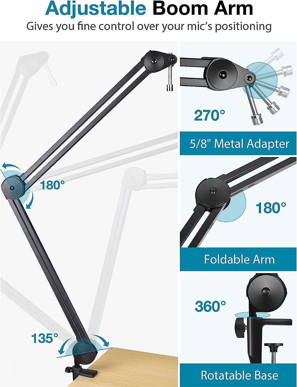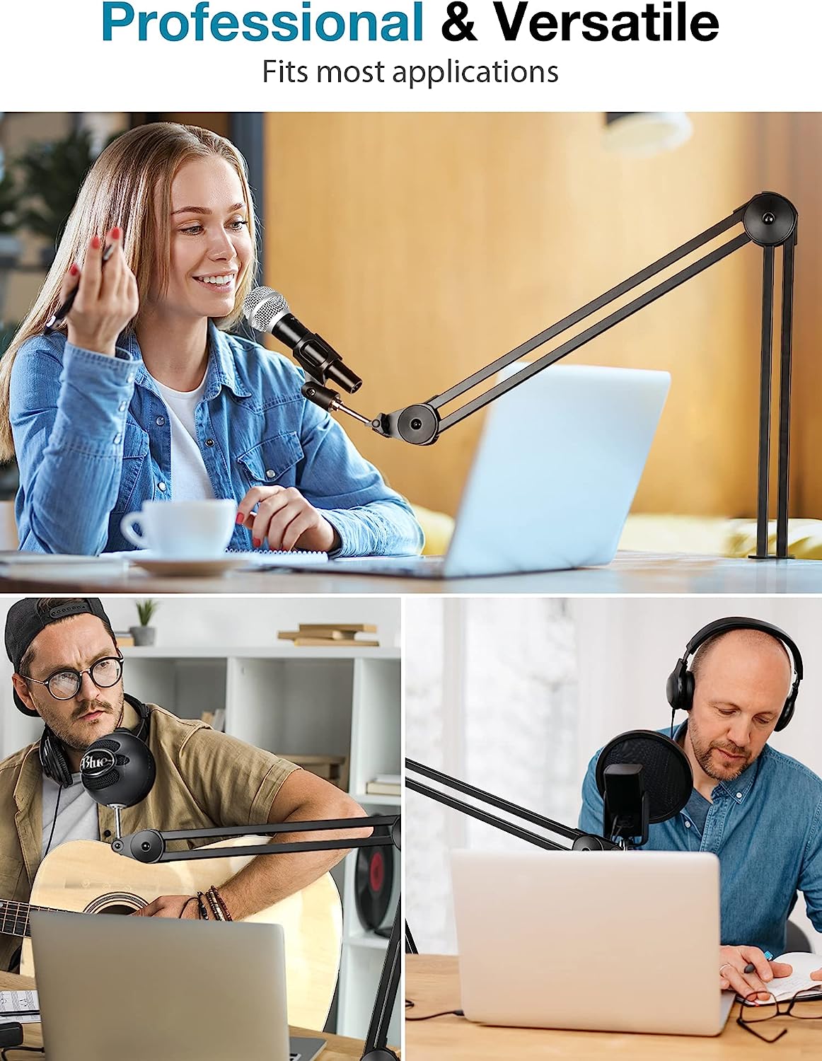 • Upgraded Length & Freely Position: This boom arm has a MAX reach of 28 inches horizontally and 27 inches vertically for your convenience. It allows you to freely position microphones within adjustable range and will not bounce up.